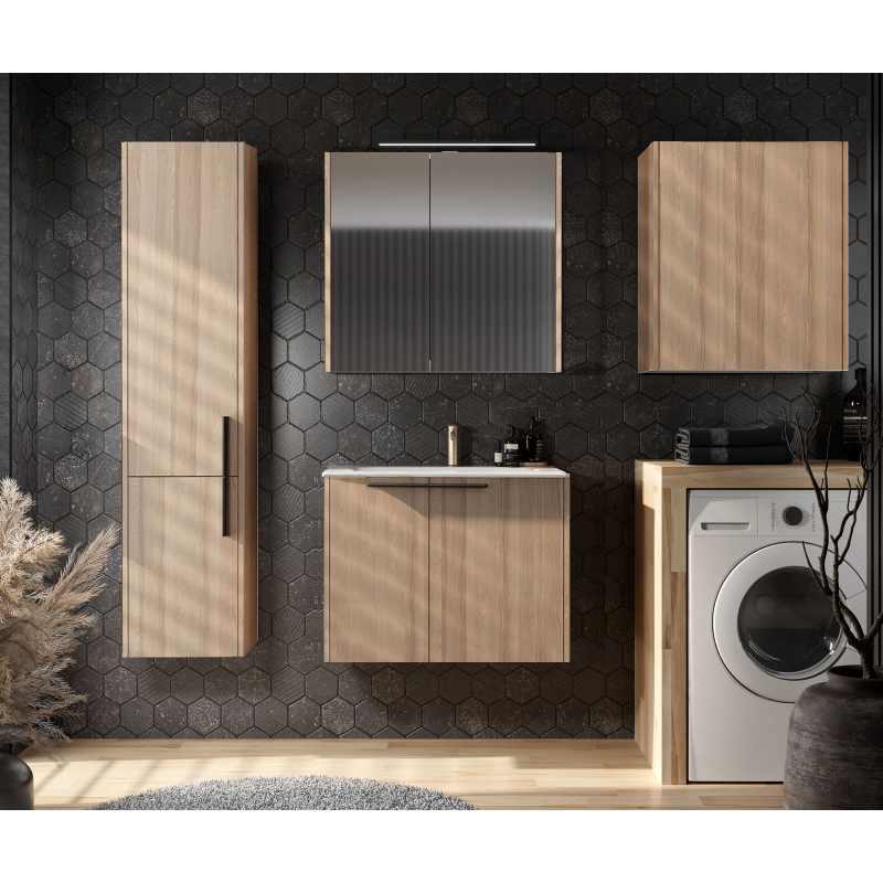 Dulap cu oglinda, Kolpasan, Tara, cu 2 usi, iluminare LED, 70 cm, craft wood
