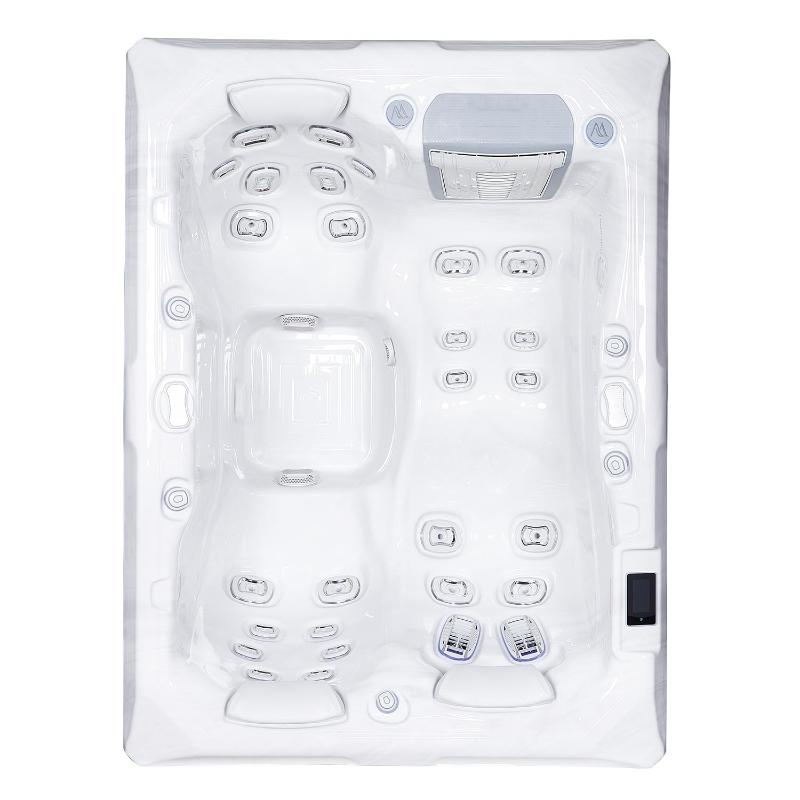 - Sistemul audio Aqua Soul Max 2.1 este inclus în dotare, permițând redarea muzicii direct din bazin, cu difuzoare rezistente la apă.