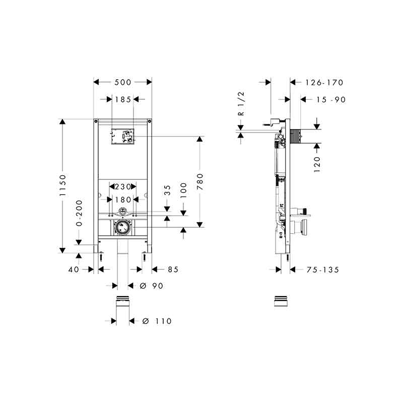 Ramă de montaj Hansgrohe, iFrame Universal, cu rezervor încastrat, pentru instalări în ghips-carton Hansgrohe, Germania