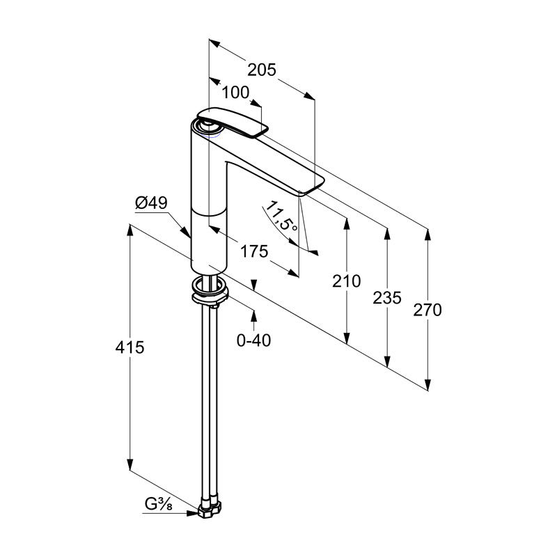 - baterie pentru lavoar înalt DN 10