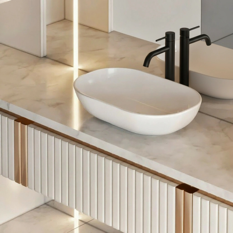 - Design înalt și elegant, potrivit pentru lavoare pe blat sau sub blat