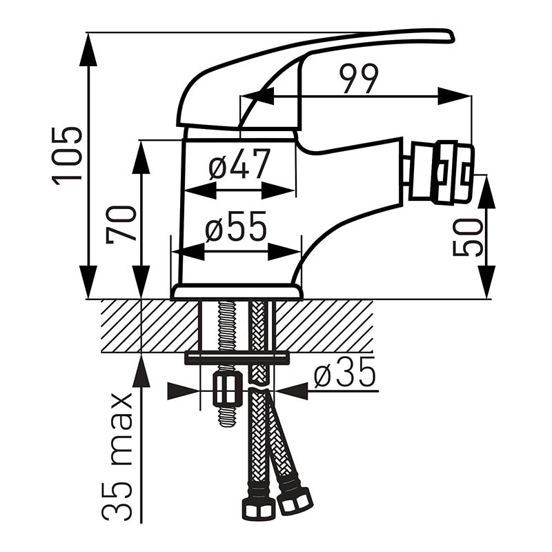 Baterie bideu, Ferro, Smile, cu ventil, crom