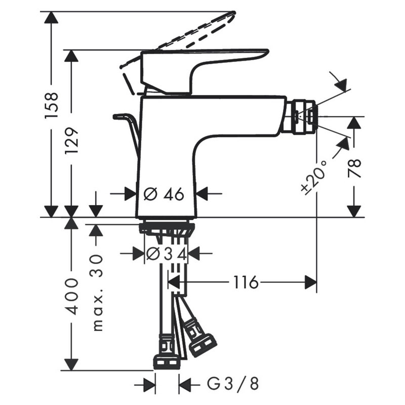 Baterie bideu cu ventil pop-up, Hansgrohe, Vernis Blend, crom