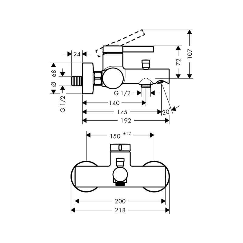 Baterie cada - dus, Hansgrohe, Vernis Shape, cu montaj incastrat, crom