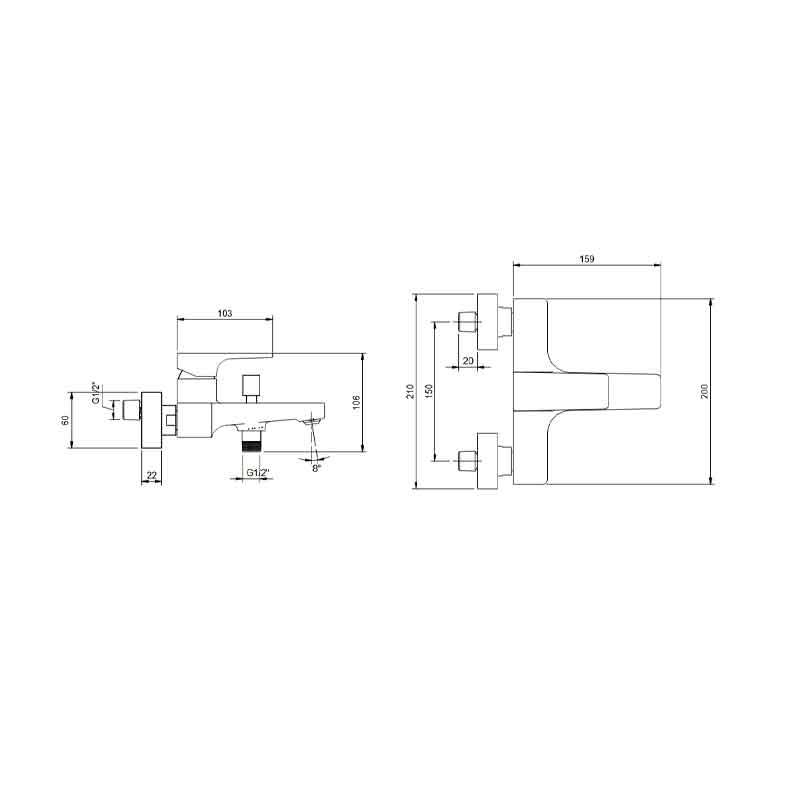 - Distanță racorduri 150 mm