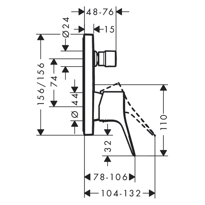 Baterie cada - dus, Hansgrohe, Vivenis, incastrabila, crom