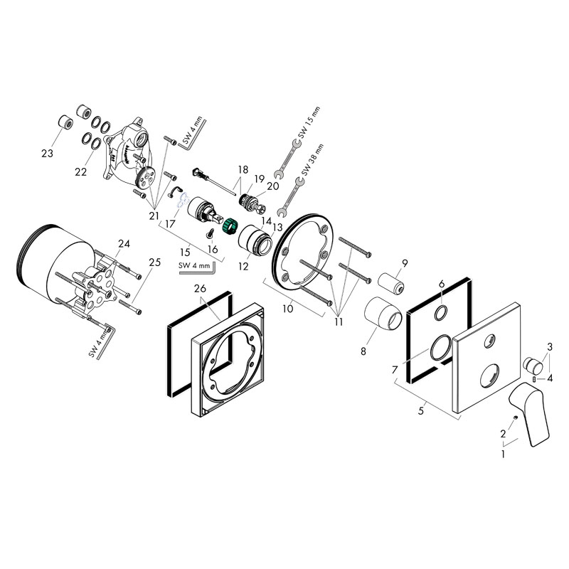 Baterie cada - dus, Hansgrohe, Vivenis, incastrabila, crom Hansgrohe, Germania