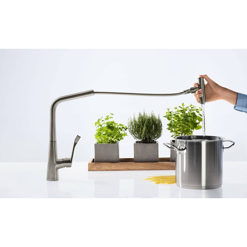 Baterie de bucatarie, Hansgrohe, Metris Select M71, pipa extractibila, crom