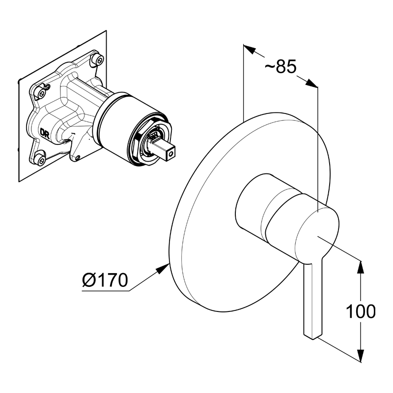 Baterie de dus, Kludi, Pure & Easy, partea vizibila, crom