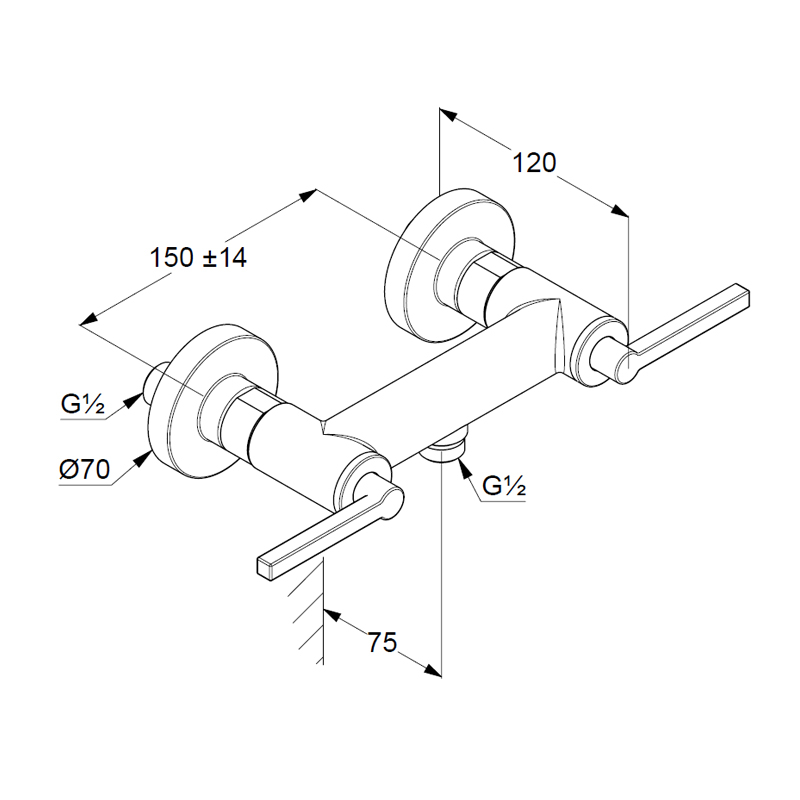 Baterie dus cu montaj pe perete, Hansgrohe, Metropol, crom
