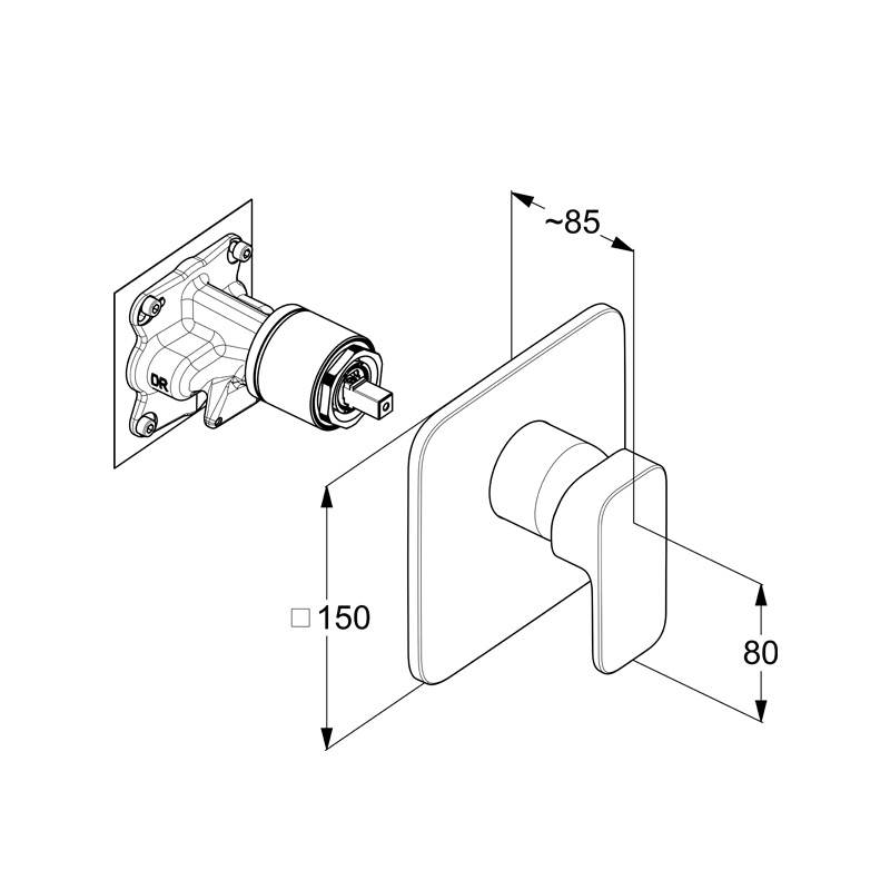 Baterie duș Kludi, Decus, încastrată, parte vizibilă, negru mat