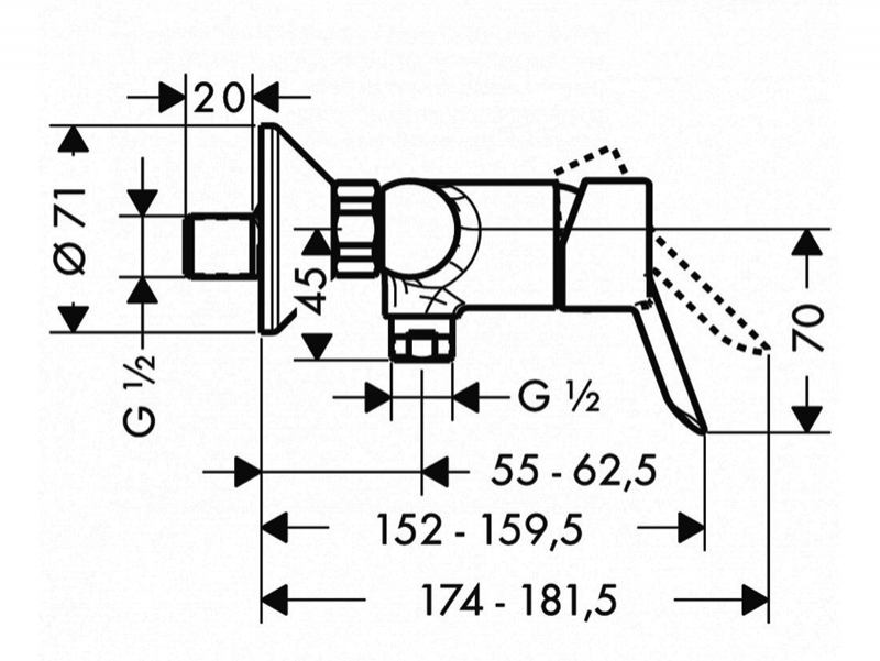 Baterie cada - dus, Hansgrohe, Vivenis, incastrabila, crom