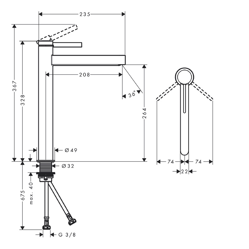 Baterie inalta de lavoar, Hansgrohe, Finoris 260, cu ventil, negru mat Hansgrohe, Germania