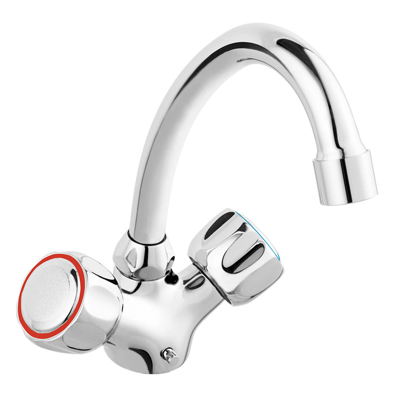 Baterie lavoar Ferro, Tina, fara ventil, alb - crom