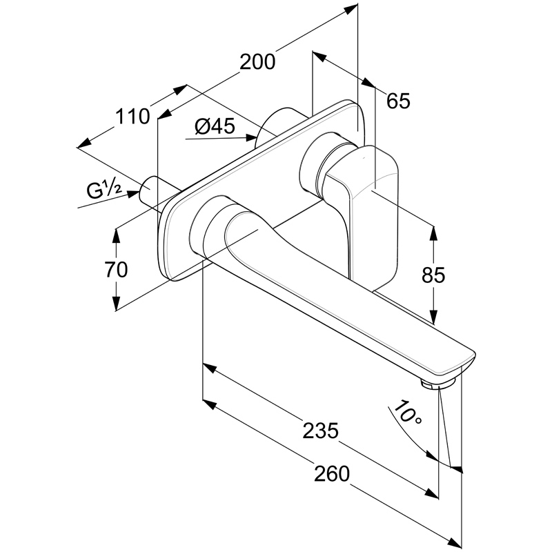 Baterie de perete monocomanda lavoar, pentru montaj mascat, cu 2 treceri