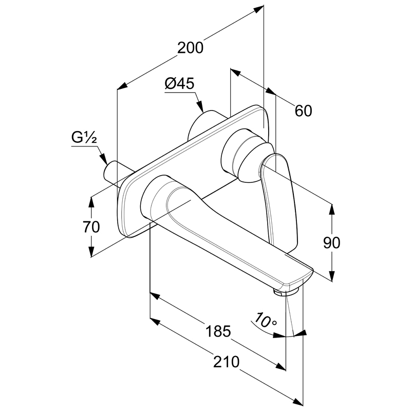 Baterie de perete monocomanda lavoar pentru montaj mascat, cu 2 treceri