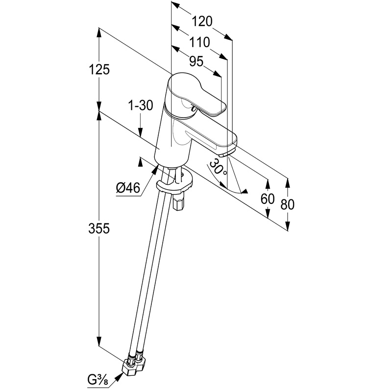 Baterie lavoar, Ferro, Standard, montaj pe perete, pipa mobila, crom