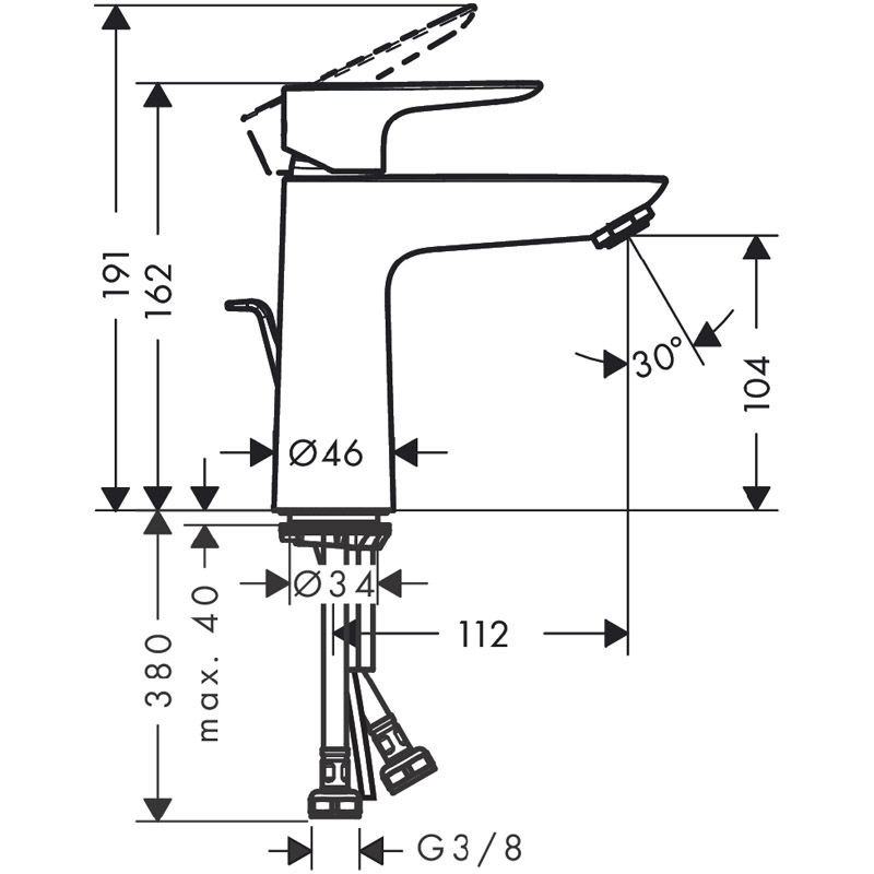 Baterie lavoar cu ventil, Hansgrohe, Rebris S 240, crom
