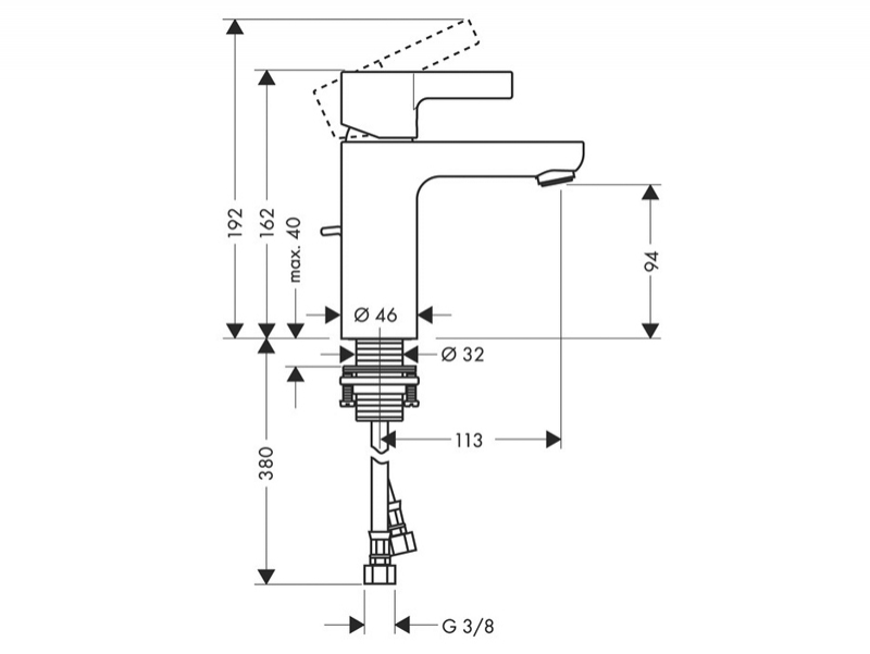Baterie lavoar Hansgrohe, Metris S, ventil cu tijă, crom Hansgrohe, Germania