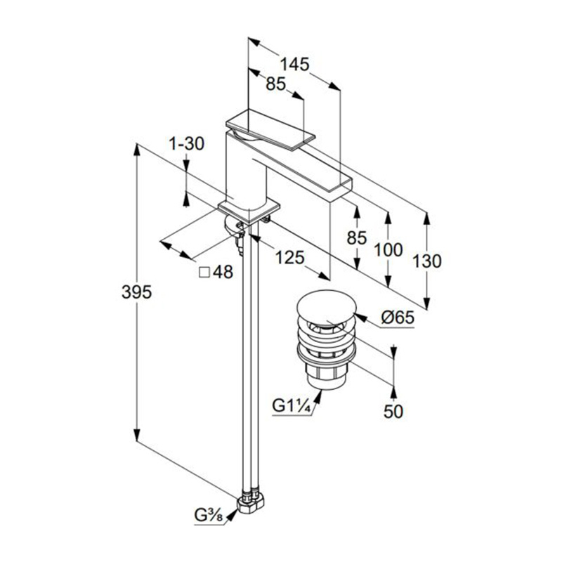 Baterie lavoar Kludi, Decus, monocomandă, lungime 85 mm, crom