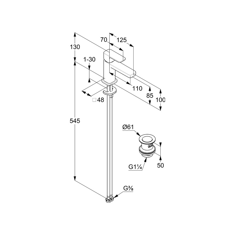 Baterie lavoar, Kludi, Bozz 100, cu ventil, crom