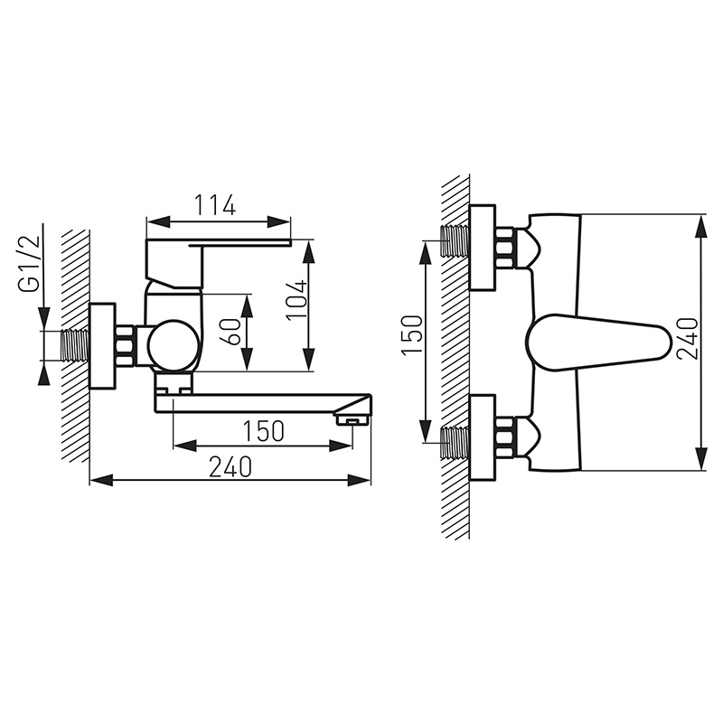 Baterie lavoar, Ferro, Basic, cu montaj pe perete, crom