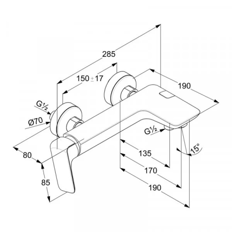 Baterie cada-dus Villeroy&Boch, Architectura, cu montaj pe perete, crom
