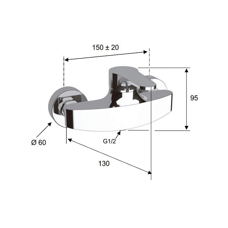 Baterie monocomanda de dus, crom, Omega Daniel, Italia