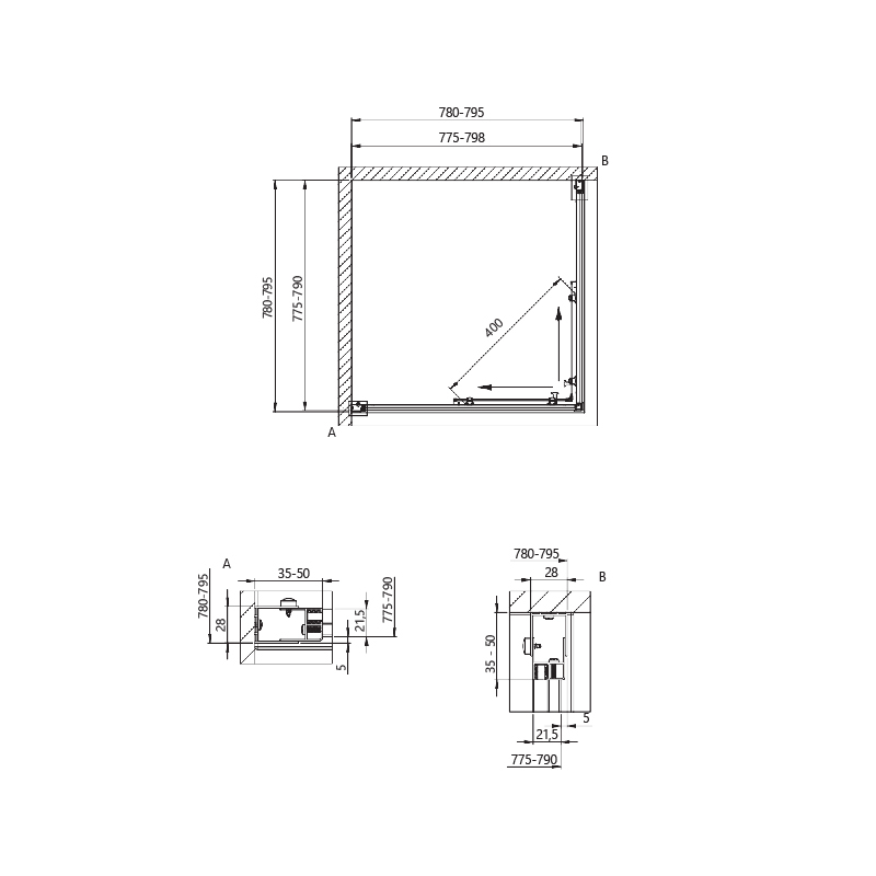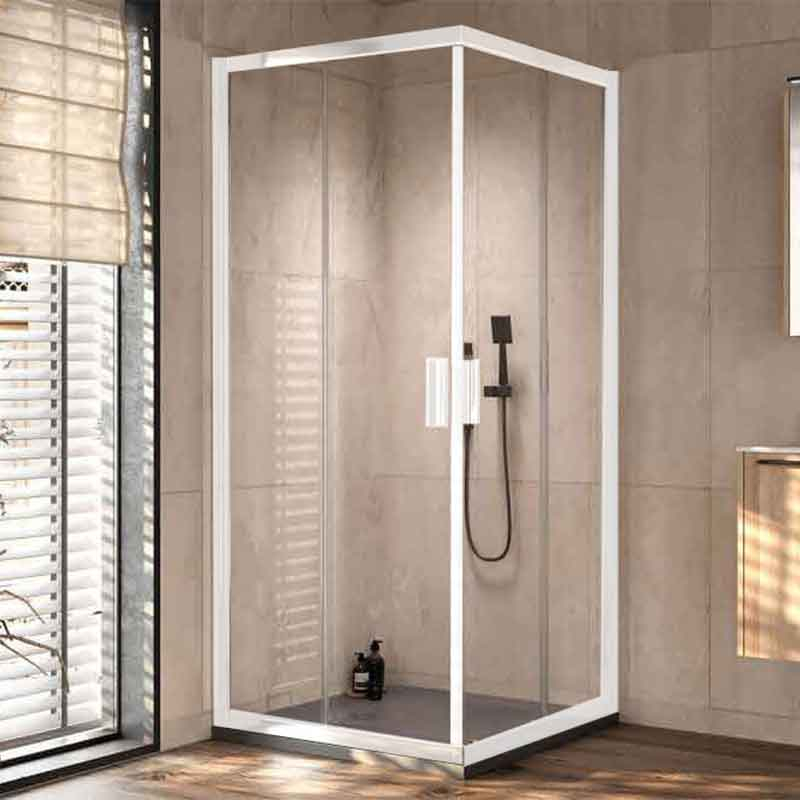 Spațiu optimizat: Datorită formei pătrate și intrării pe colț, cabina folosește eficient spațiul, fiind o alegere practică pentru băi mai mici sau medii. Ușile culisante nu ocupă spațiu suplimentar la deschidere.