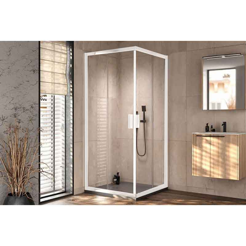 - Spațiu optimizat: Datorită formei pătrate și intrării pe colț, cabina folosește eficient spațiul, fiind o alegere practică pentru băi mai mici sau medii. Ușile culisante nu ocupă spațiu suplimentar la deschidere.