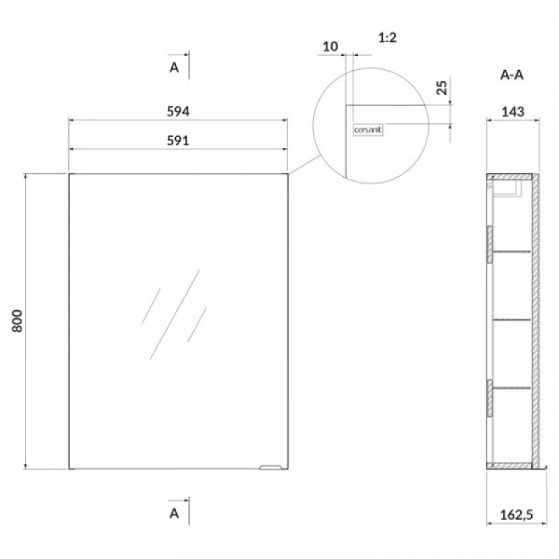 Dulap cu oglinda, Cersanit, Virgo 60, maner negru, alb