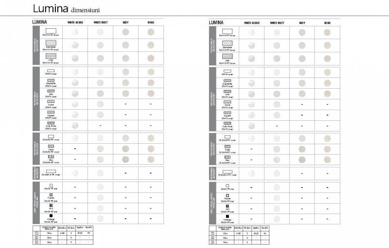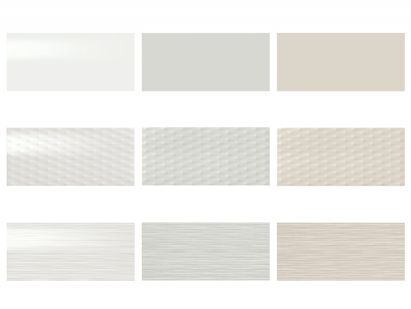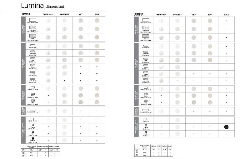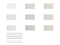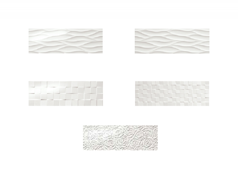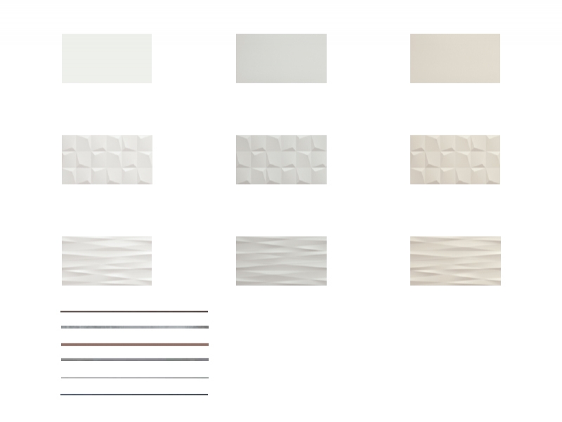 Seria Lumina contine placi de faianta alba si brauri rosii si negre.