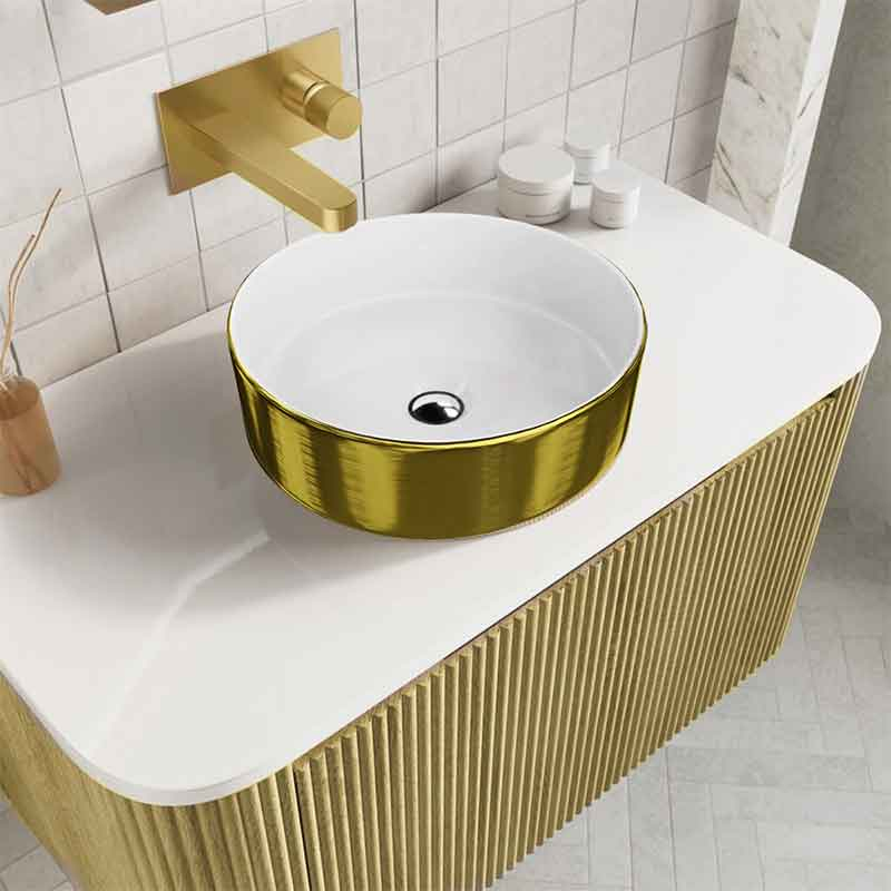 Lavoar pe blat Spectrum, Rosina Brushed Gold, rotund, auriu periat-alb
