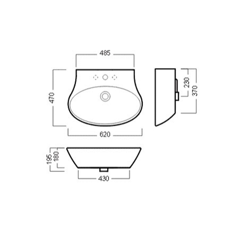 Lavoar suspendat, Hatria, Dolcevita, oval, 75 cm, alb