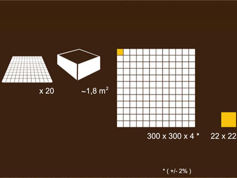 Dimensiunea la placa este de 30x30 cm si la cub de 2,2x2,2 cm.