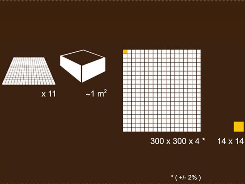 Dimensiunea la placă este de 30x30 cm şi la cub de 1,4x1,4 cm.