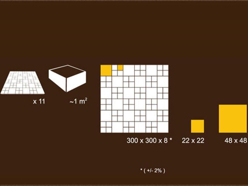Dimensiunea la placa este de 30x30 cm si la cub de 2,2x2,2 respectiv 4,8x4,8 cm.