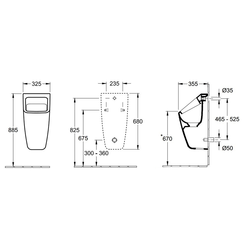 Pisoar Villeroy & Boch, O.Novo, cu alimentare din spate, alb alpin