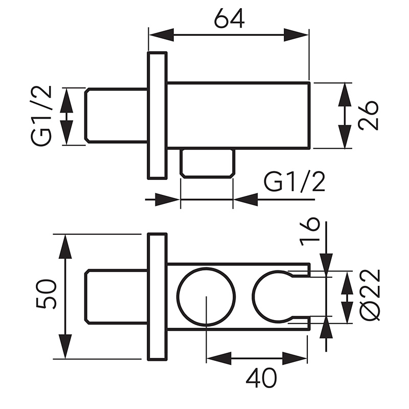 Racord de dus, Ferro, pentru baterie ingropata, patrat, crom