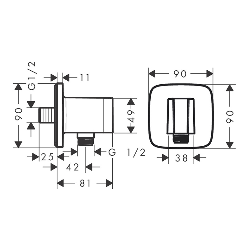 Cot racord, Hansgrohe, FixFit Q, cu suport pentru para de dus, crom