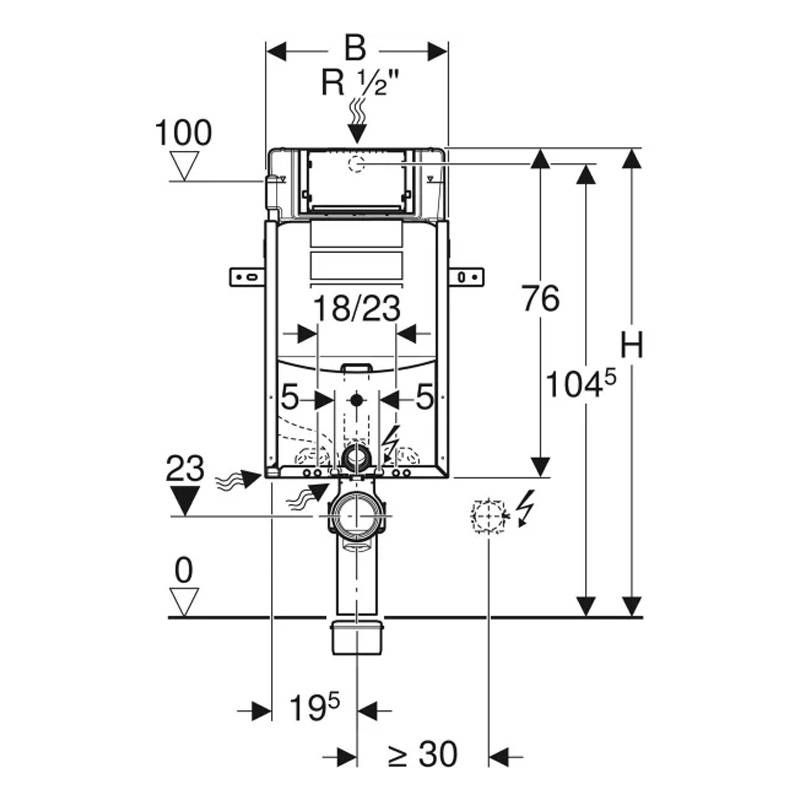 Rezervor încastrat pentru WC Geberit, Kombifix, cu rezervor îngropat Delta, UP182, cu acționare frontală, 12 cm