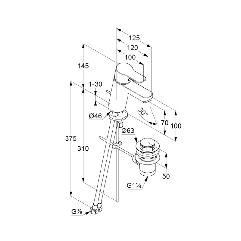 Baterie lavoar Kludi, Decus 85, cu ventil click-clack, brushed bronze