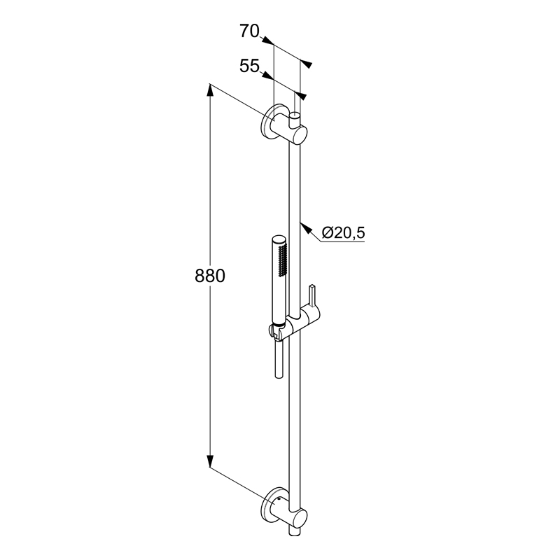 Coloana dus Kludi, A-QA, cu cap dus fix si mobil, crom