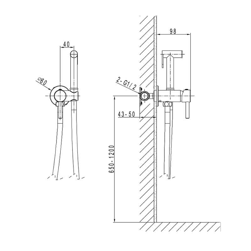 Set de dus igienic, Ferro, Presso, cu suport si furtun, crom