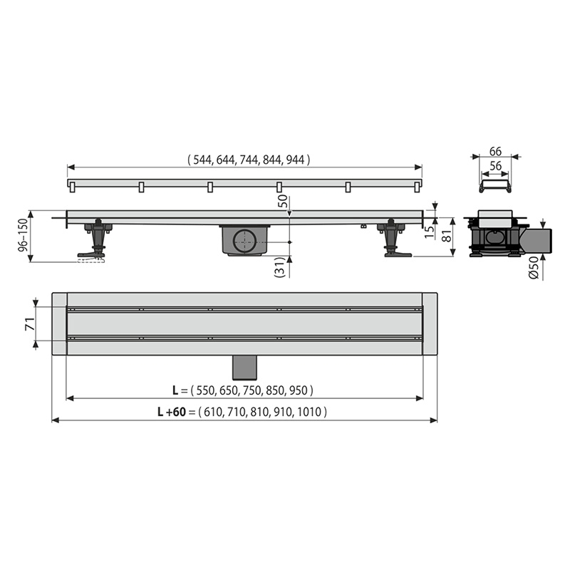 Set rigola de dus, AlcaPlast, Simple, cu capac, 85 cm