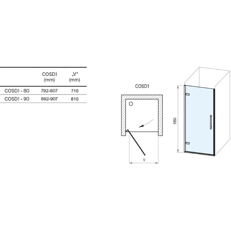 - Configurație flexibilă (nișă sau cabină): Principalul avantaj al acestui model este adaptabilitatea. Ușa poate fi montată singură într-o nișă sau în combinație cu un perete lateral fix (modelul COPS), poate forma o cabină de duș completă, pătrată sau dreptunghiulară, în colțul băii.
