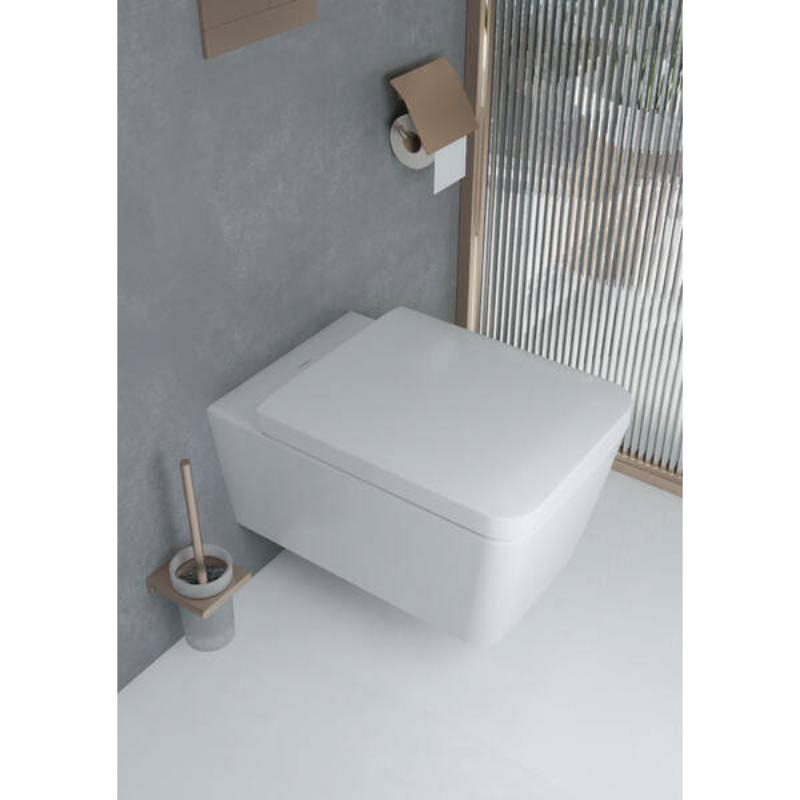 Cu dimensiunile de 54 x 36 cm, ceramică albă lucioasă și montare suspendată la perete, vasul lasă podeaua vizibil liberă și face spațiul mai ușor de întreținut. Produsul a primit premiul iF Product Design Award 2023, recunoaștere internațională pentru calitatea designului industrial.
