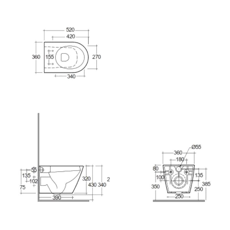 - Tehnologie spălare: Rimless (fără ramă interioară)